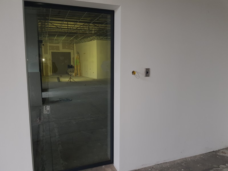 A keret nélküli fotocellás automata üvegajtó esetében 10mm vastag edzett üveget használunk.
